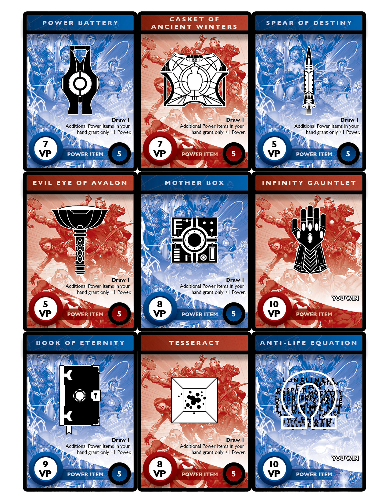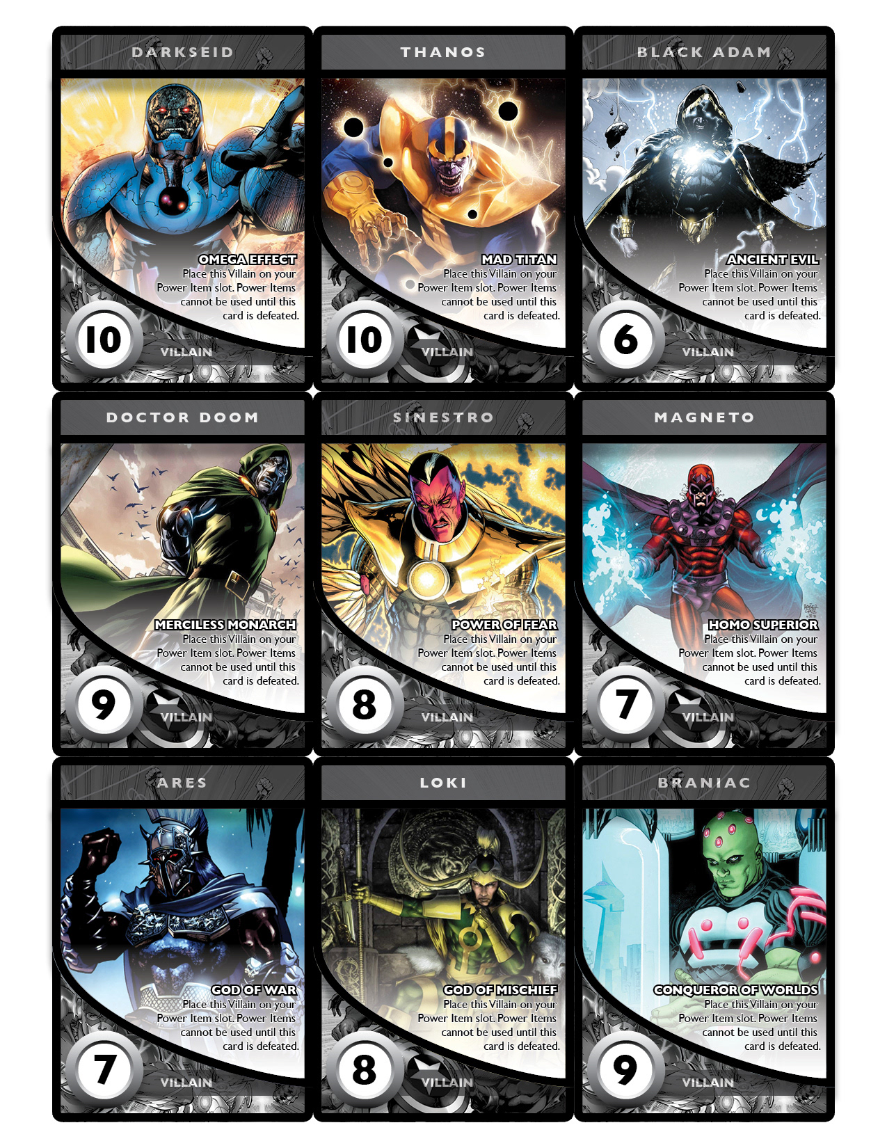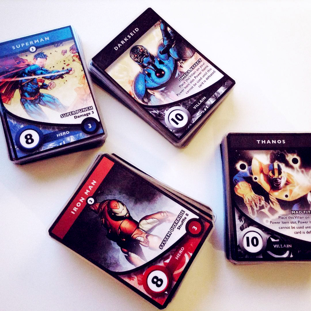 This was a prototype for a unique deck-building game my brother and I created. We used characters and art from DC Comics and Marvel for game development.